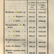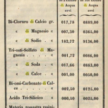del Signor Carloni predetto." Le analisi vengono ripetute a Massa con risultati quasi analoghi. Le differenze vennero imputate all'evaporazione, al viaggio e all'alterazione dovuta ai tempi diversi in cui era stata presa.