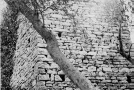 Sul suo lato anteriore di circa metri quattro, si apre la porta ad arco scemo,con luce di metri uno e cinquanta per tre e cinquanta; lo spessore dei muri misura ottanta centimetri. Non vi è traccia del muro posteriore. I muri laterali misurano circa tre metri. All'interno sono state accatastate pietre per un'altezza che varia da due metri e mezzo a tre, occludendo in tal modo la luce della porta.