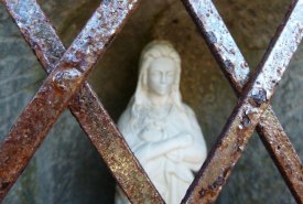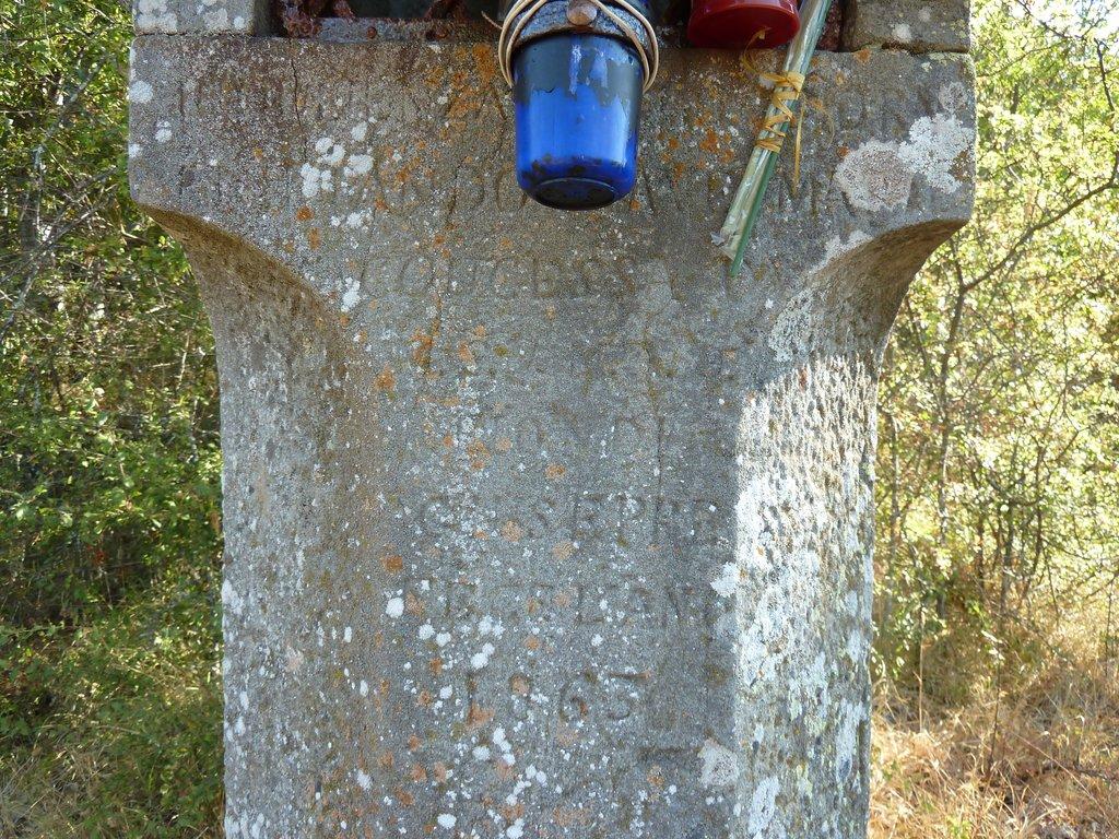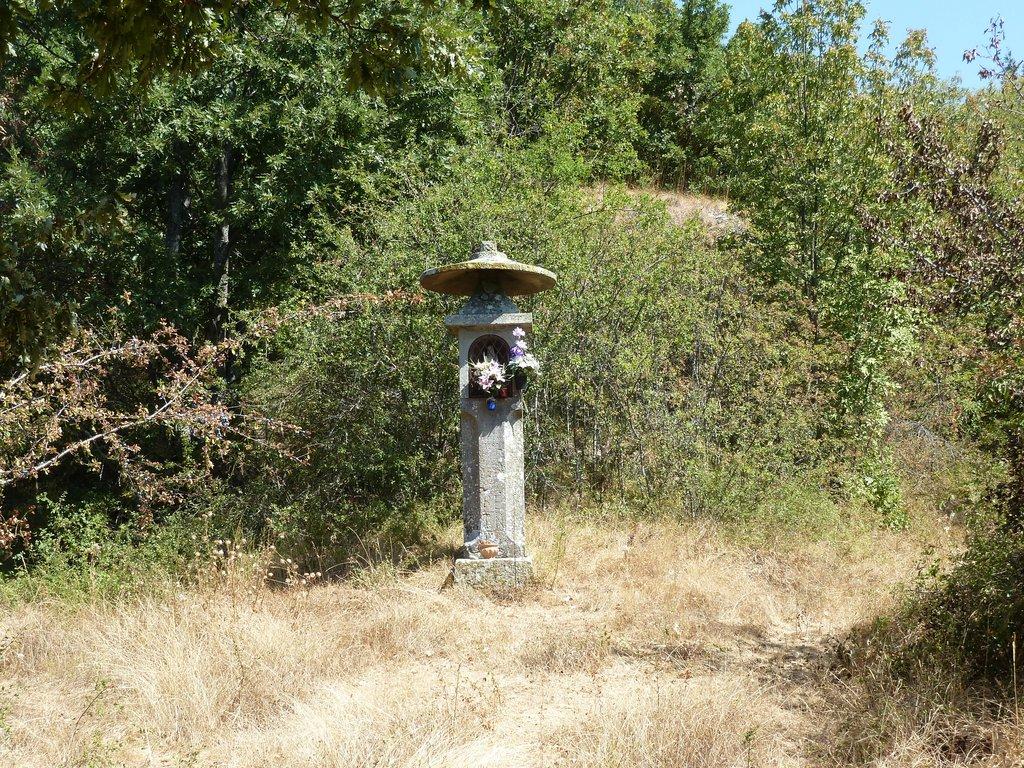 Si arriva a una bellissima maestà con una nicchia contenente una scultura di marmo che rappresenta la Madonna: ha una forma molto elaborata, è una specie di colonna quadrata in arenaria con una nicchia che finisce con una punta, sulla quale qualcuno ha costruito una specie di "cappello" di cemento. E' una maestà costruita forse per qualche "grazia ricevuta". Delle incisioni sotto la nicchia, nella colonna e sul piedistallo sono riportate delle scritte poco leggibili. Si legge chiaramente un nome, la parola “CONCESSA”, la data del 1863.... mi riprometto di chiedere in paese quando tornerò.