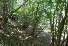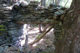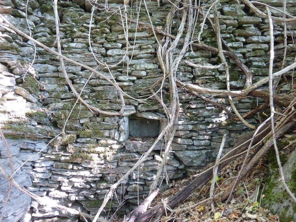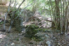 Non riuscendo a ritrovare il sentiero che sale diretto all'alpeggio, percorro il sentiero a mezza costa e si iniziano ad incontrare le prime piane. Si tratta di ampie piane con qualche muretto a secco che salgono verso la cima, ma proseguono anche sotto il sentiero. In questo tratto il bosco ha ormai invaso quelle che forse erano piane coltivate o pascoli. Di tanto in tanto si incontrano le "cascine" abbandonate e qualche pianta di nocciolo. Nella stragrande maggioranza si tratta di ruderi in pietra, qualcuno molto grande, disposti lungo il sentiero a distanza l'uno dall'altro. Percorro ancora il sentiero, ma dopo un lungo percorso a mezza costa termina in una zona ripida e boschiva probabilmente mai utilizzata nè per il pascolo nè per le coltivazioni.